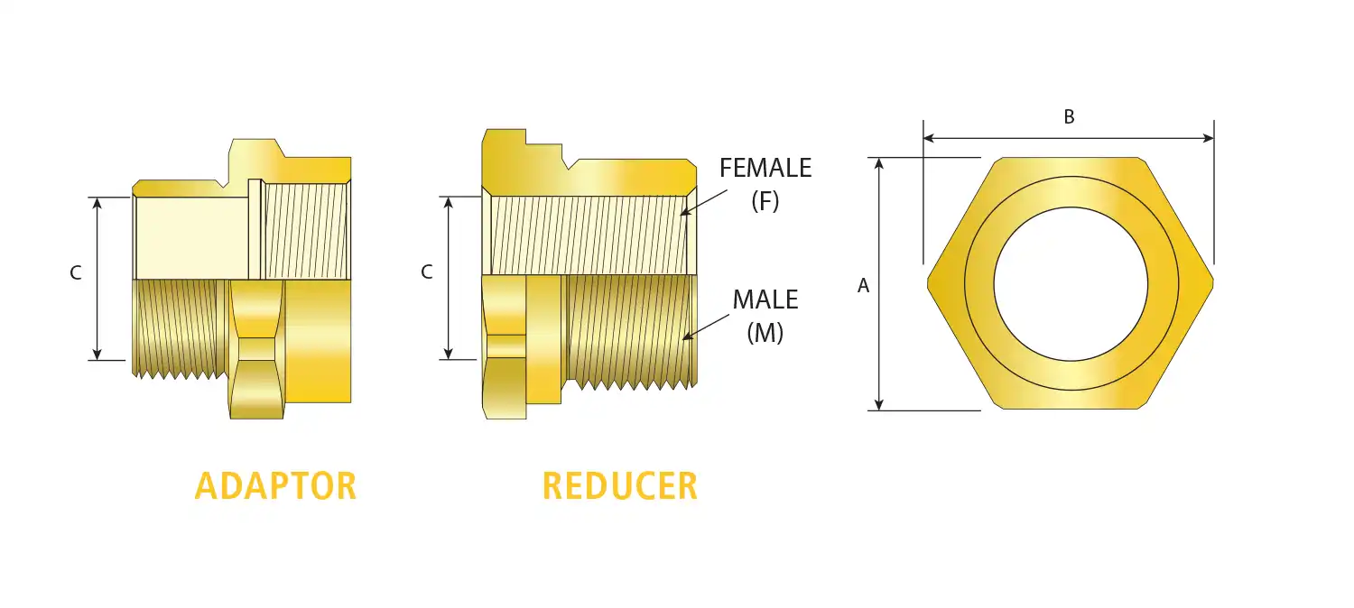 | Minimum reducer bore determined by female thread | |||||||||||||||||||||||