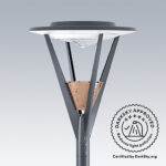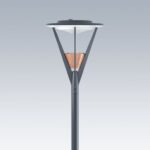 Decorative post-top LED lantern with clear or frosted diffuser, copper or stainless steel finish lampshields. Street or symmetrical distributions including specific optics to target low ULOR.