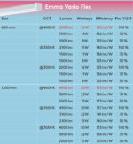 - VARIO Feature (Colour temperature switch): 3000 K (warm white), 3500 K or 4000 K (neutral white)