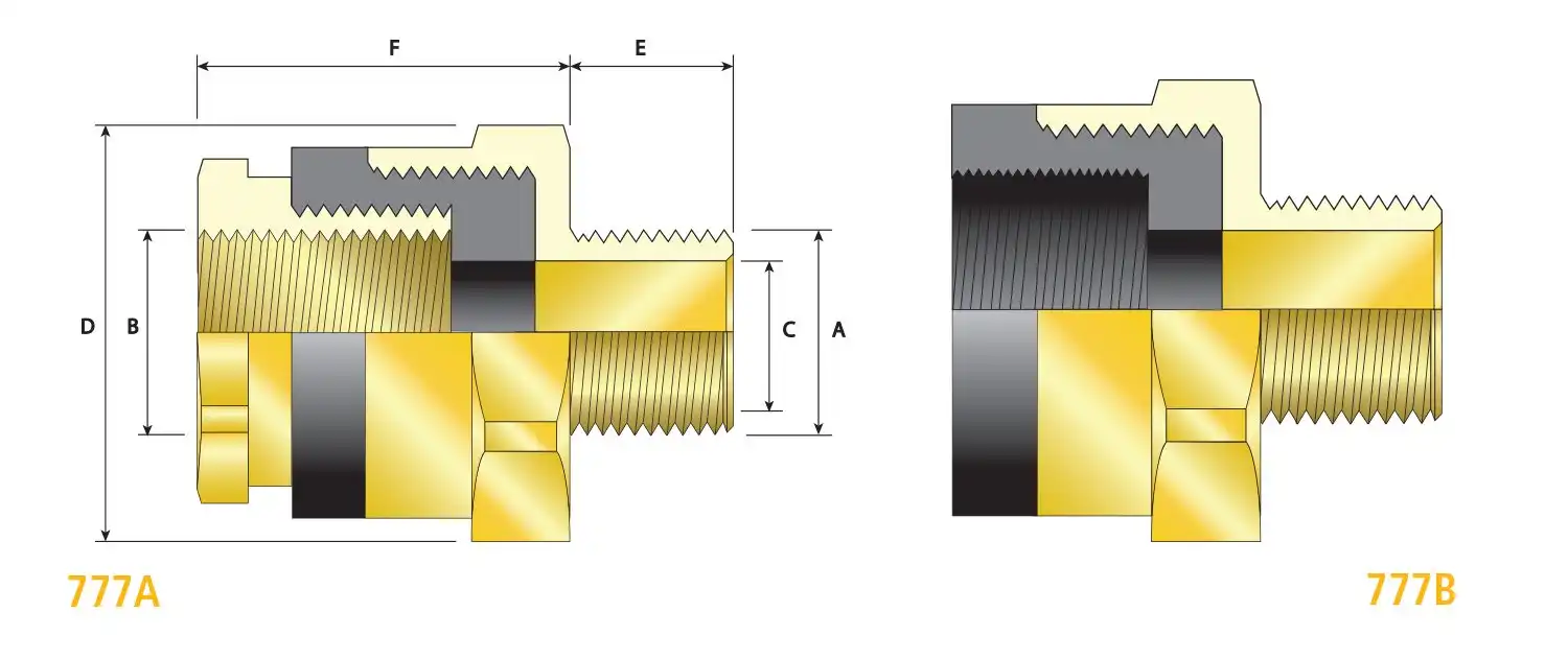 Male Thread Size ‘A’ | Minimum Thread Length ‘E’ | Female Thread Size ‘B’ (Type A) | Female Thread Size “B” (Type B) | Maximum Bore Diameter ‘C’ | Normal Protrusion Length ‘F’ (Type A) | Nominal Protrusion Length “G” (Type B) | Across Flats ‘D’ |